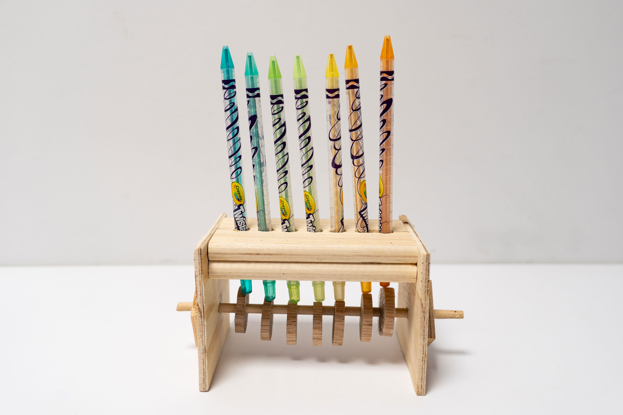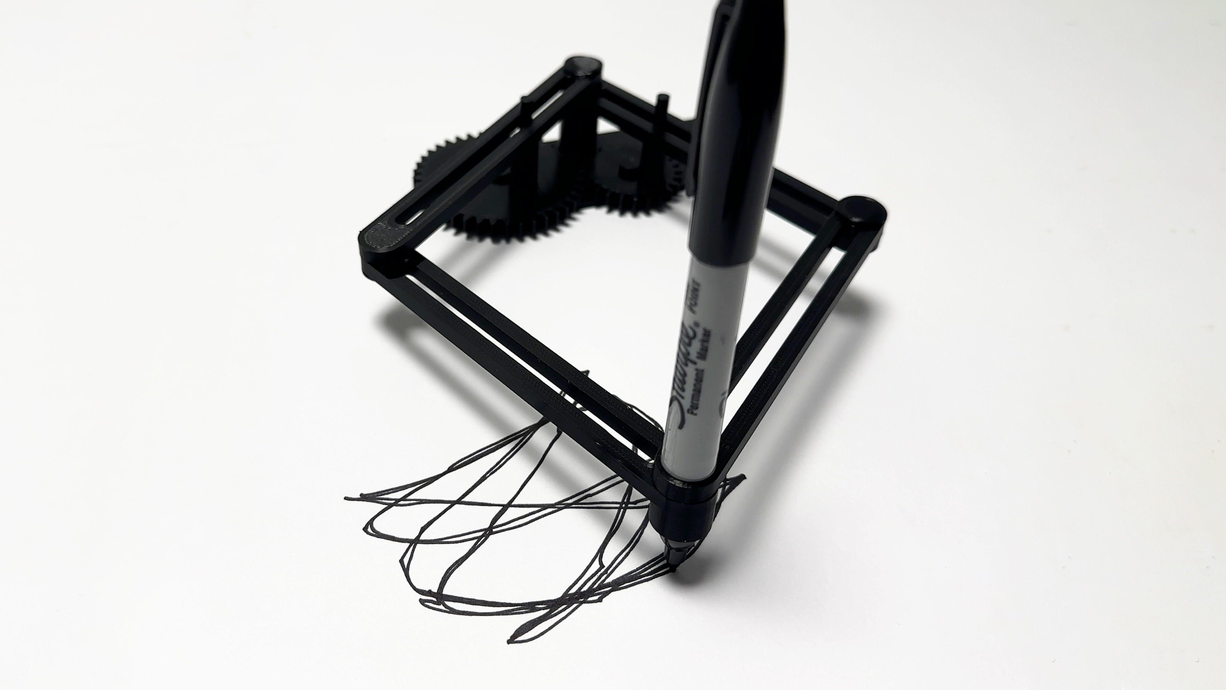My previous drawing robots have a very simple mechansim for holding markers—either a series of holes on Minus E or a tube on Scribbot. There was also no lifting mechanism, as my robots’ scribbly drawing style did not require it. This year, inspired by the pen-holding mechansim on pen plotters, I decided to add a similar mechansim to my drawing robot.