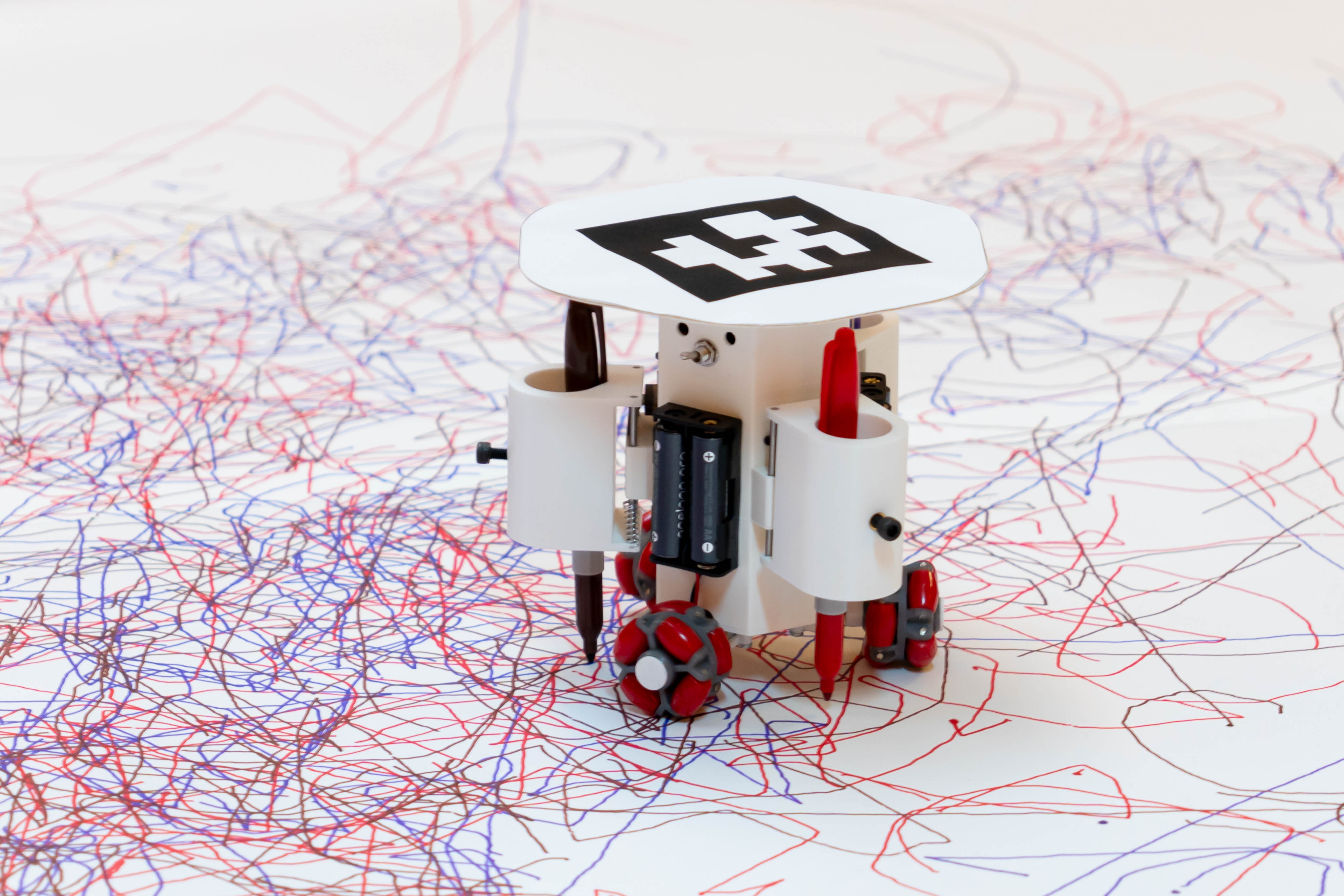 Tri-Color Drawing Robot #drawing #robot #mechanical #chaotic #scribble #pixelation #analog #fabrication #arduino #network #itp #designing-for-digital-fabrication #featured