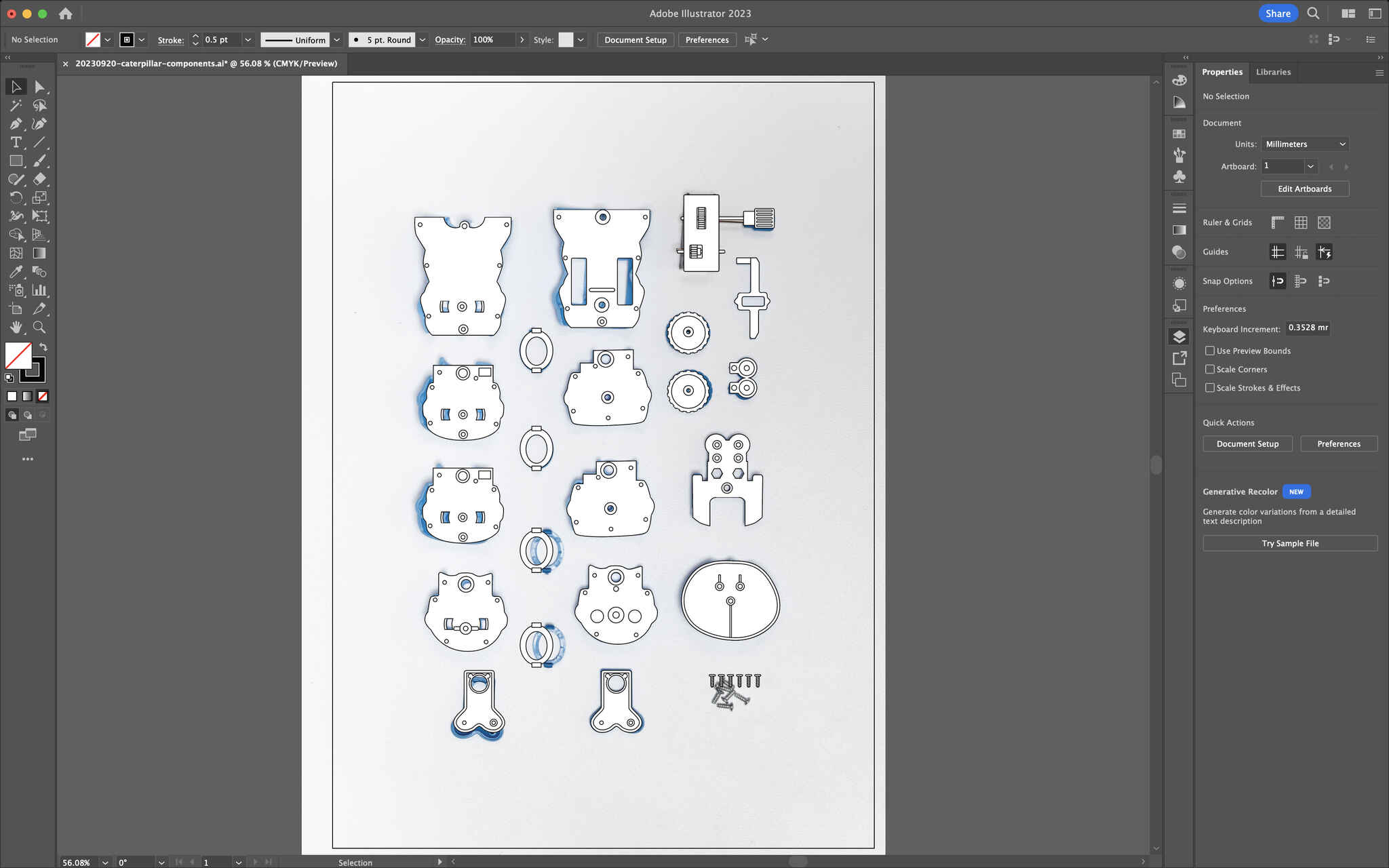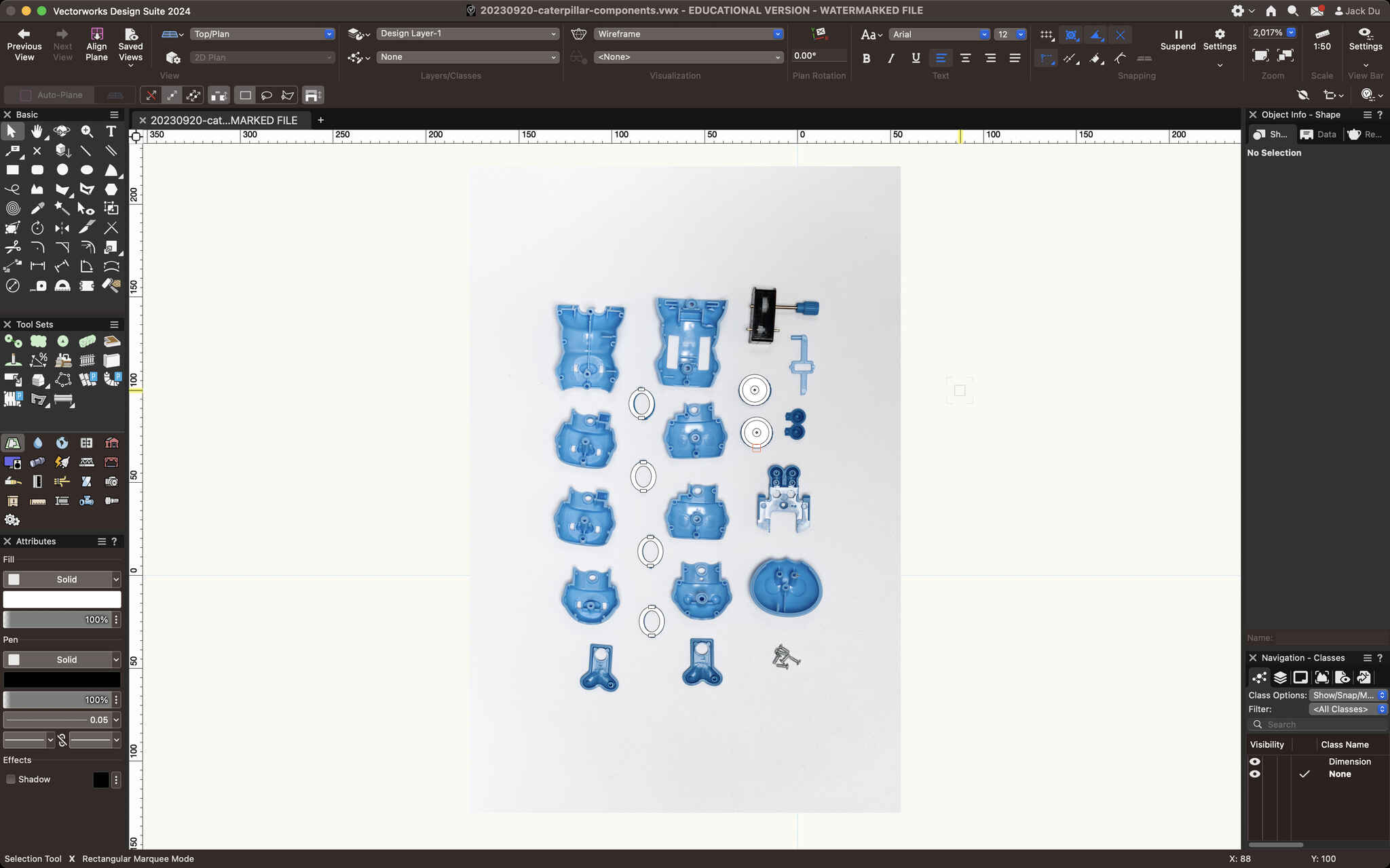 This week, we are studying the movements of our mechanical toys. The first step we were asked to do was to draw all components in Adobe Illustrator. Since I am fairly familiar with Adobe Illustrator, I challenged myself to practice drawing in Vectorworks, which I have little experience in.