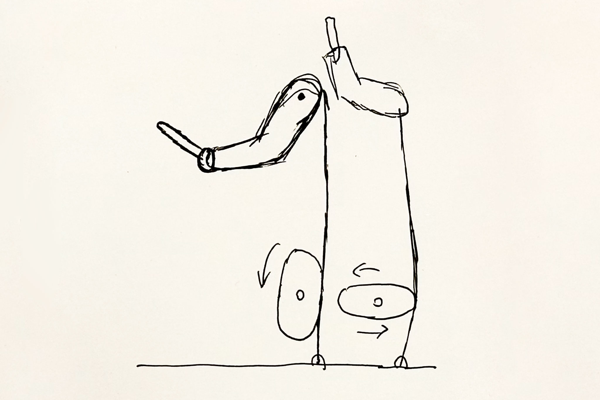 A drummer’s motion can be simplified as two arms alternating to move up and down. To create a cardboard prototype, I used a relatively simple mechanism: a cam. The cam is eccentric, so as it rotates, it pushes the follower up and down. With two identical cams, they can be positioned so that when one cam pushes the follower up, the other cam does not.