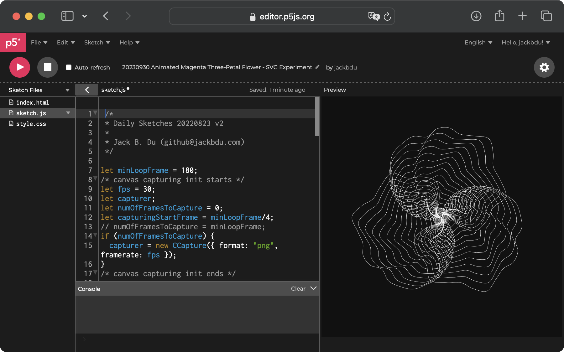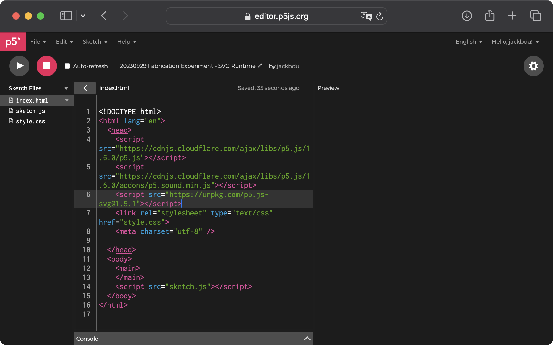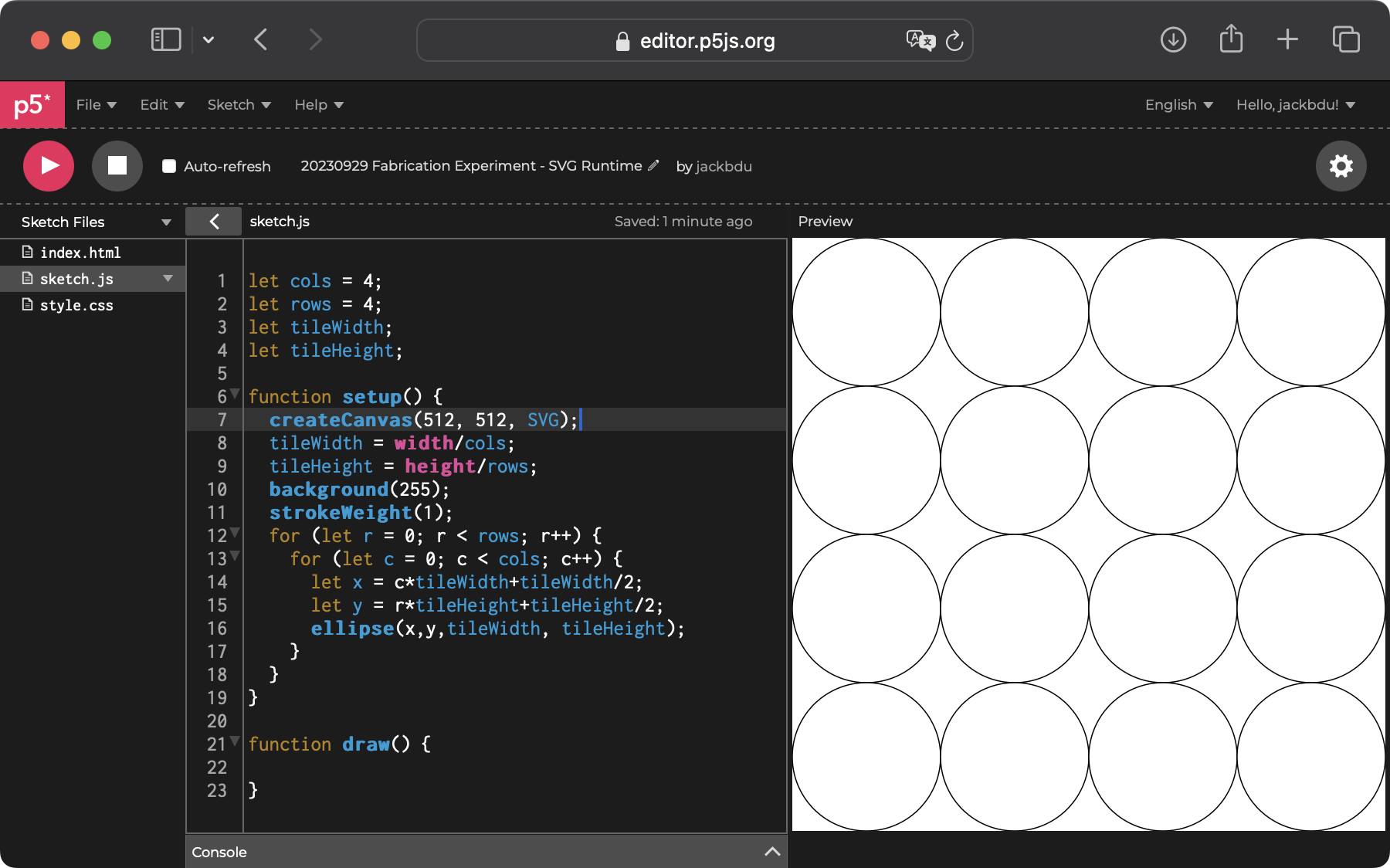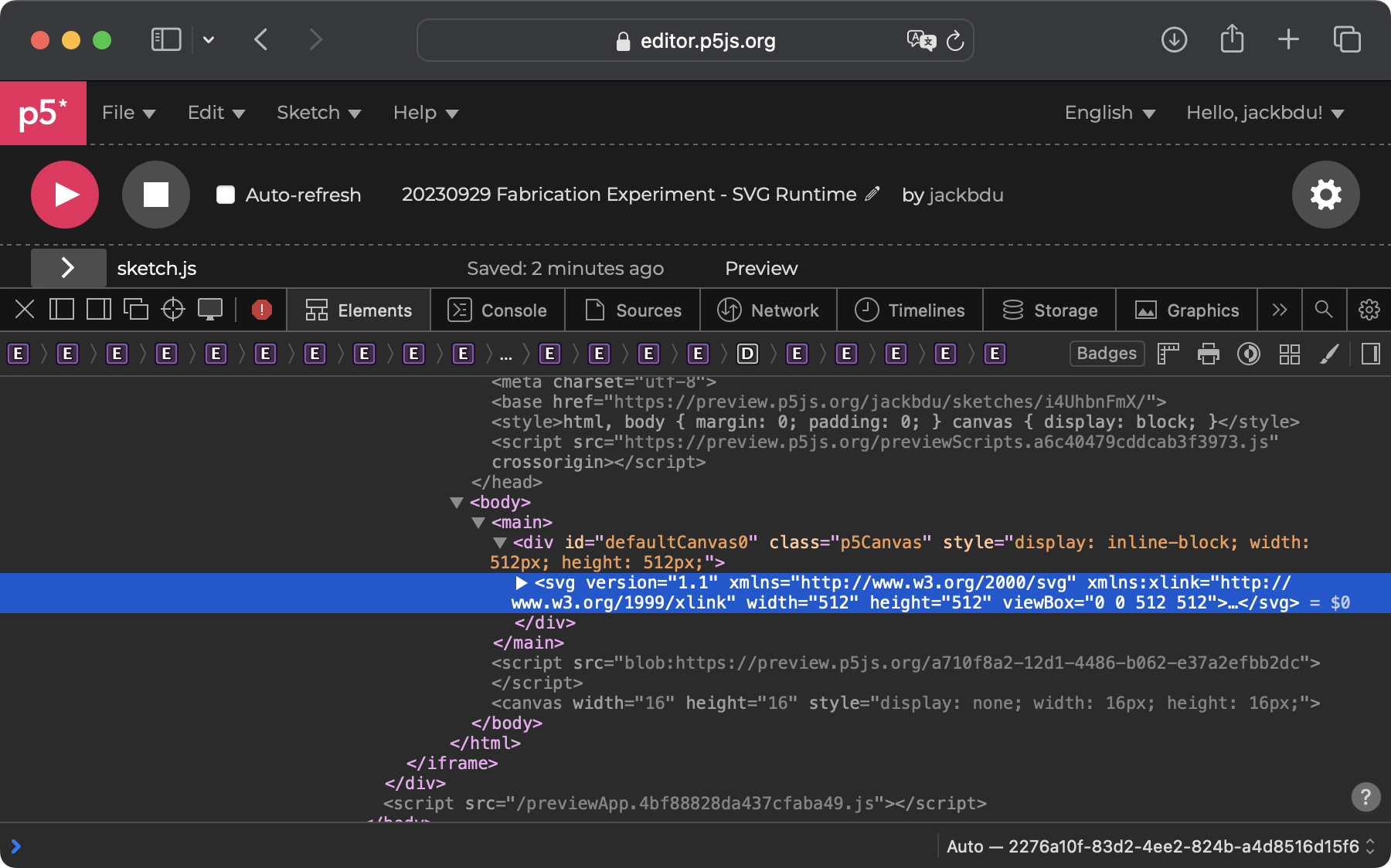 Now, everything we draw in p5.js will be rendered as an SVG element.