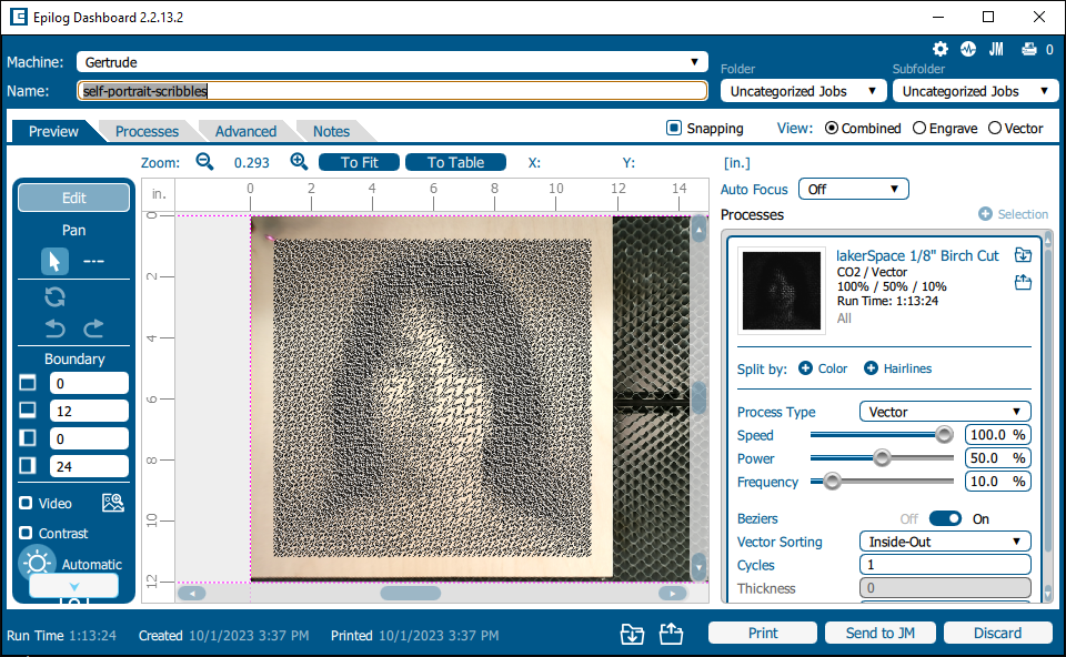 Laser Engraving Experiments #algorithmic #scribble #portrait #fabrication #p5js #javascript #itp #introduction-to-fabrication