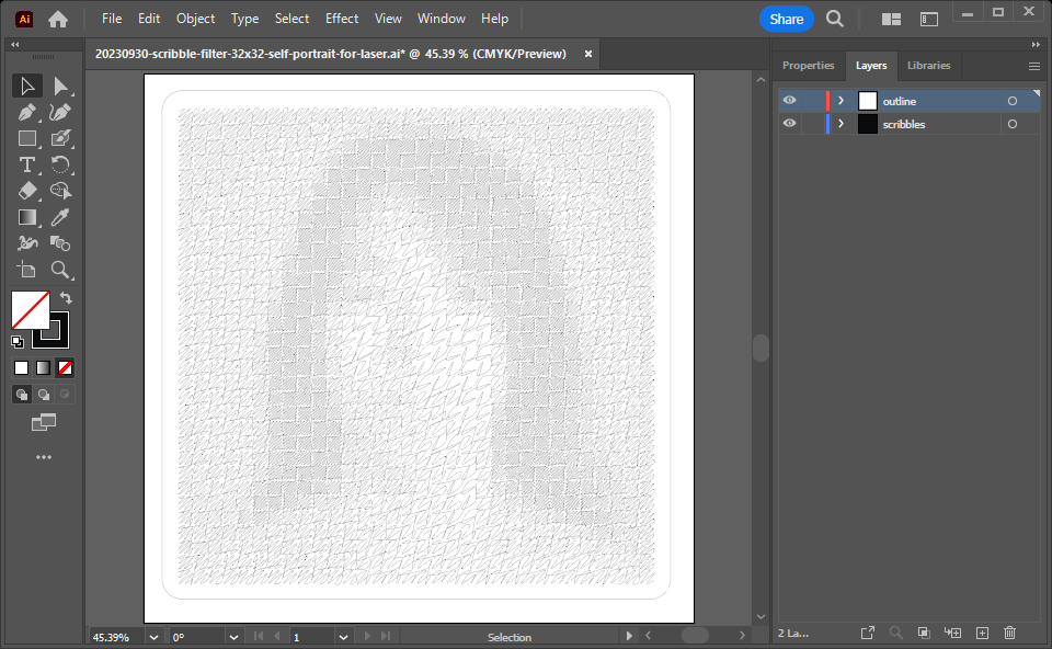 In Adobe Illustrator, I separated the outline and the scribble into two layers.
