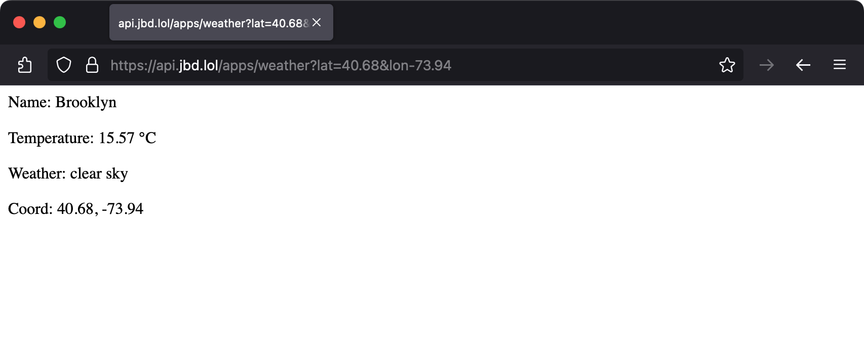 The last one is apps/weather, which displays weather information of Brooklyn, NY. I am using OpenWeather’s API for showing the current weather.