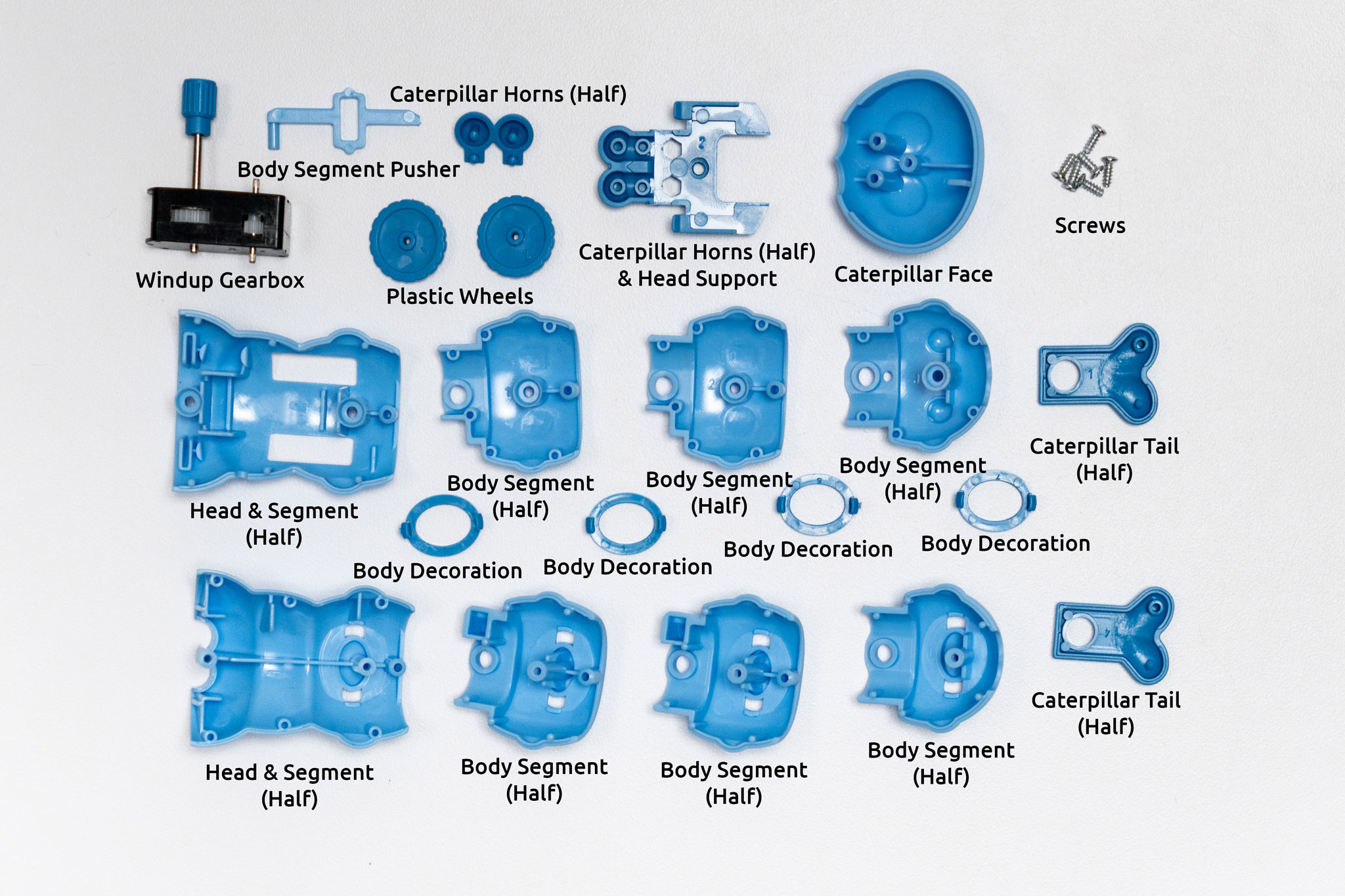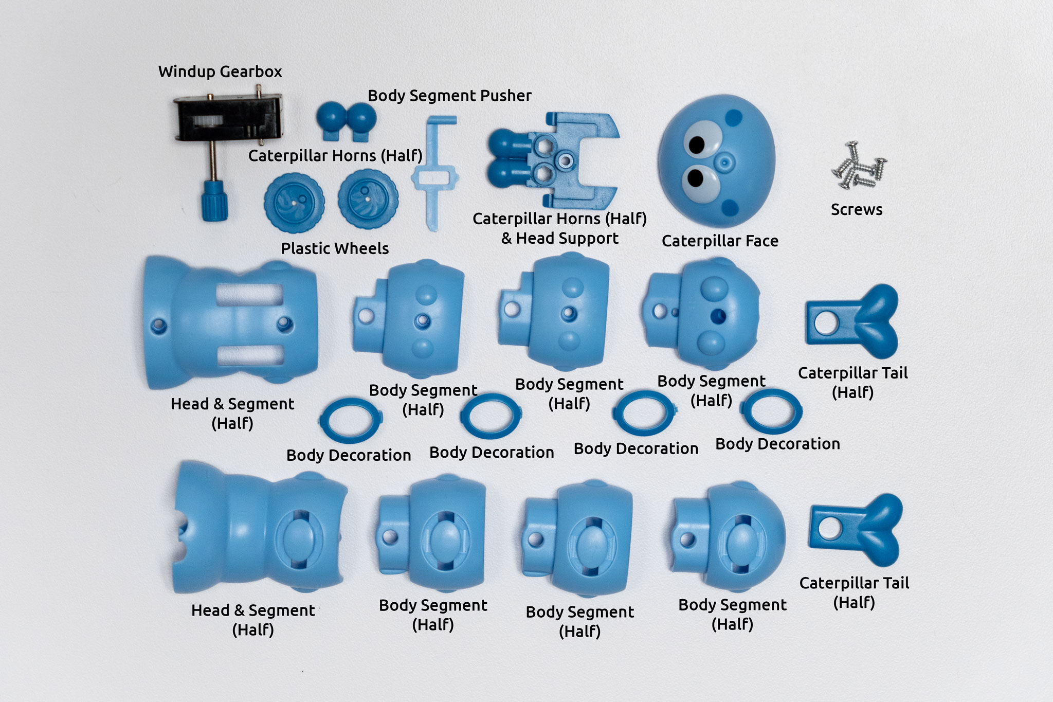 It was quite a fun activity. There were more components than I originally thought. For instance, I did not think too much about the two different colors present on the toy. It turns out each individual plastic piece is always in one color (except for the face, which appears to be painted). For example, the dark blue decoration rings are separate from the light blue body segments. I suspect that is because it is easier and more cost effective to make plastic pieces of the same color. Pieces of different colors are manufactured separately and then assembled together in a separate process. Also, I didn’t expect an enclosed windup gearbox. I think it might also have something to do with the cost. It is probably cheaper to incorporate standard windup gearboxes that are mass produced in millions of units. This strategy reminds me of modularity in computer programming, which helps programmers reuse useful code written by other programmers without understanding what’s happening under the hood. All that being said, in this class, I hope I will get to learn all the inner-workings of automatons, including any windup mechanism. Can’t wait to learn more in this class!