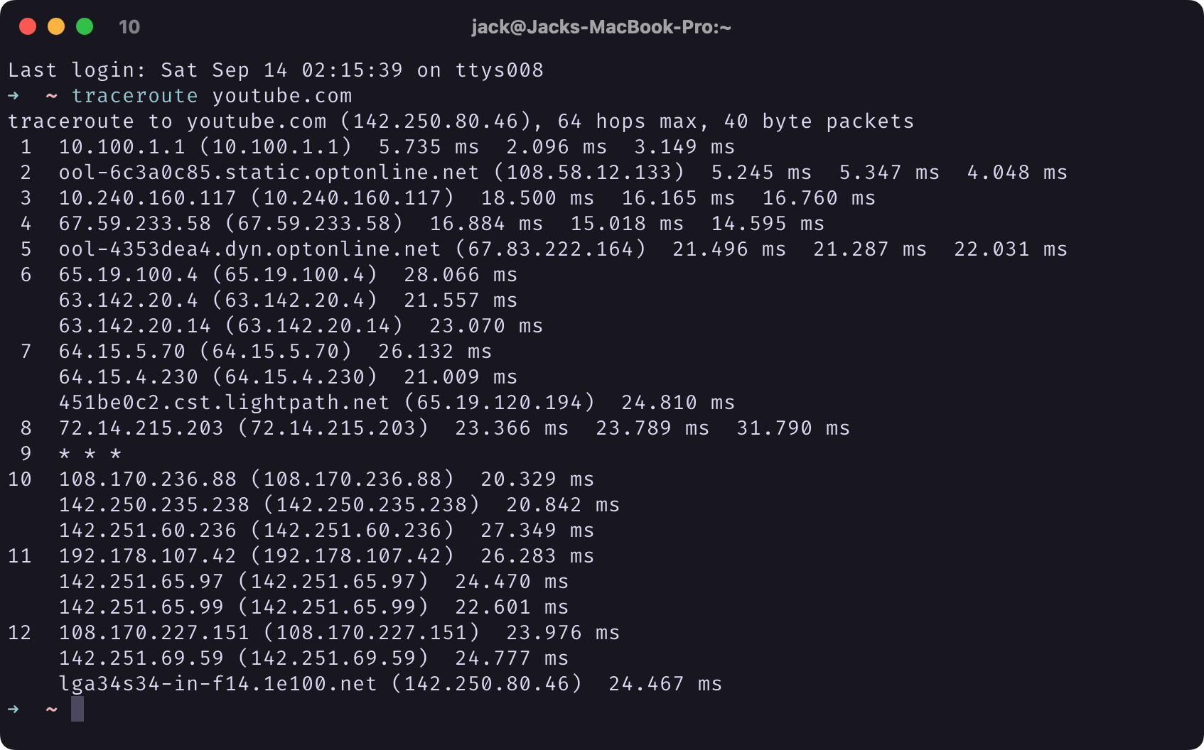 Screenshot of Terminal Window of traceroute youtube.com Output |