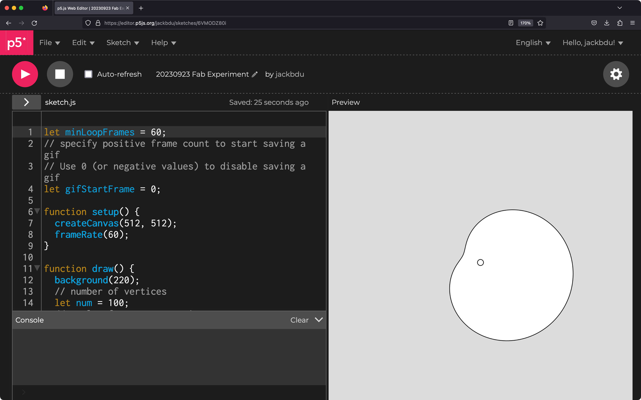 Luckily, I have created similar shapes with code before, so I was able to quickly sketch out a much more accurate contour in p5.js.