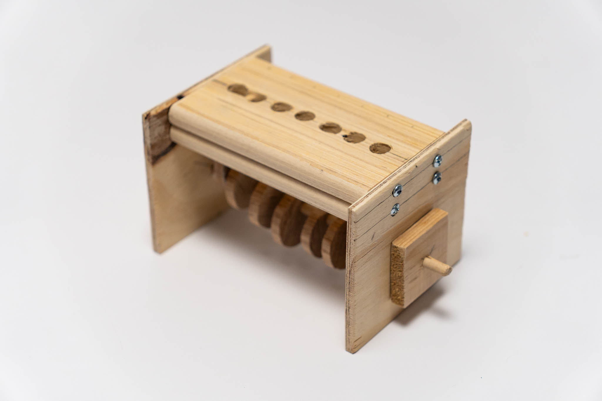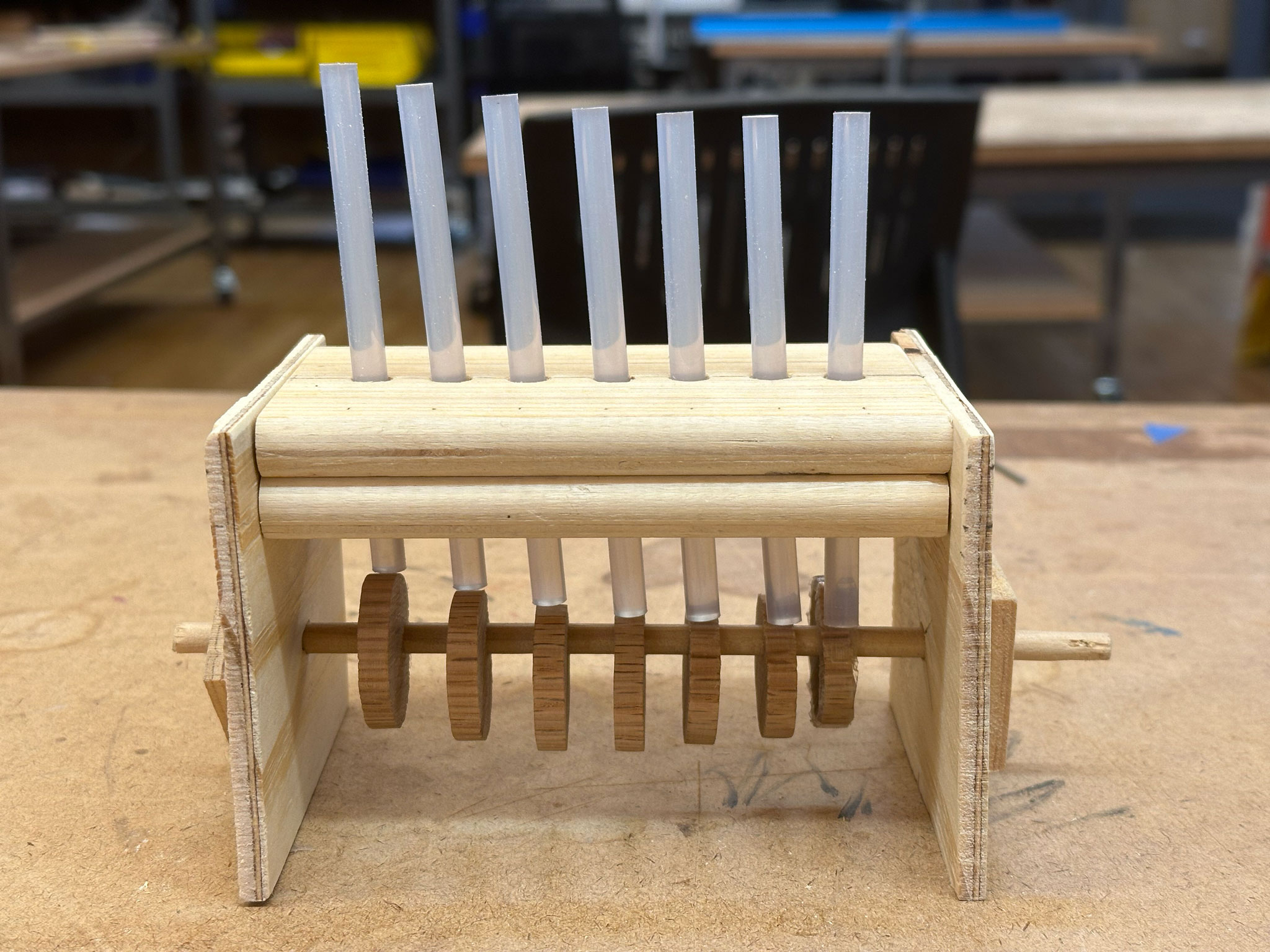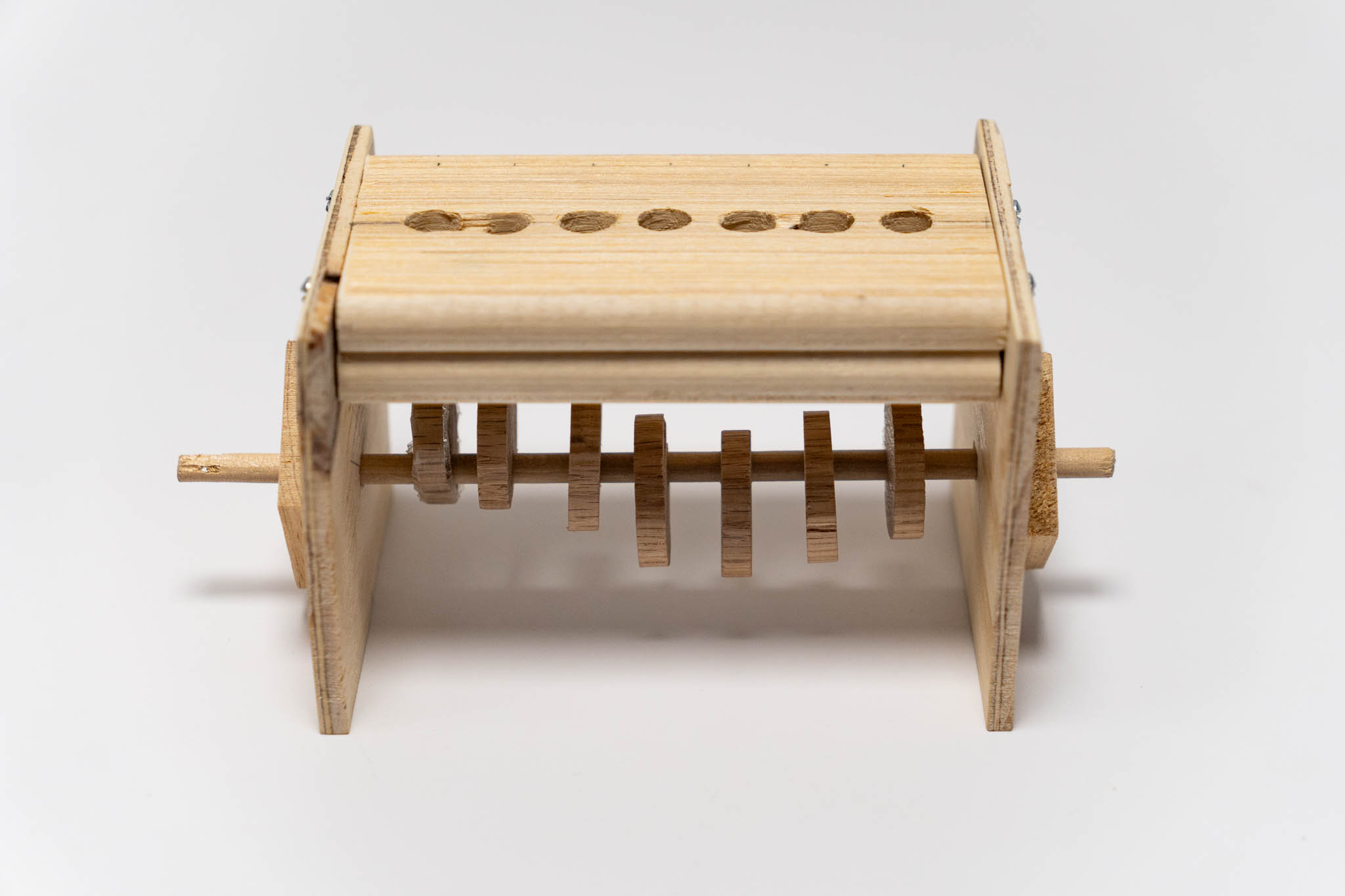 While the motion was far from perfect, this (mostly) cardboard prototype proved that my idea could work. It also convinced me that a wooden prototype would work much more reliably.