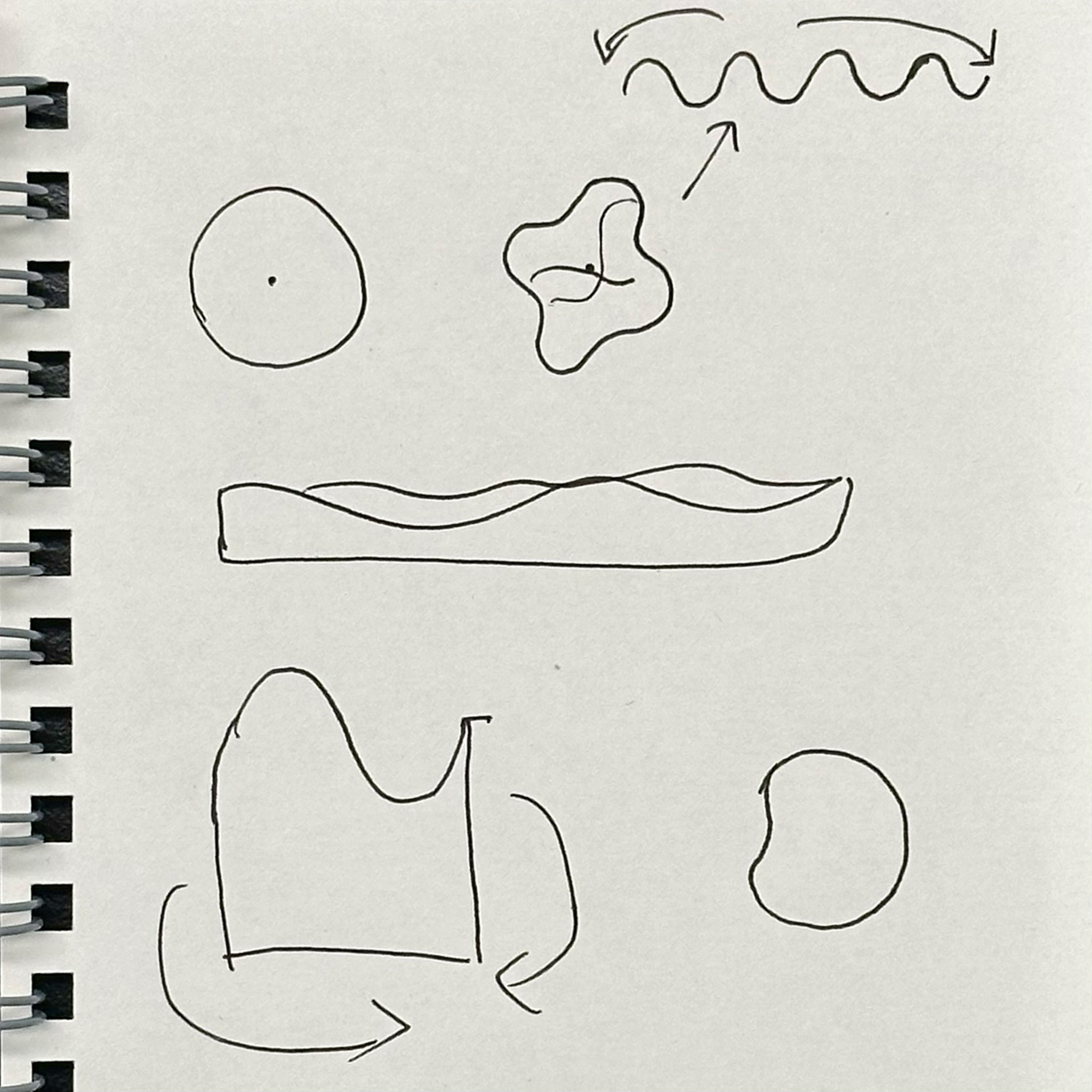One of the mechanisms that I recently learned is called cam, which is commonly used to transform rotary motion into linear motion. I tried imagining and sketching what a cam would look like if the linear movement it produces follows a sine wave. I started with a regular sine wave, and tried to wrap it around a circle. While it gave me a general idea of what it might look like, it was far from accurate.