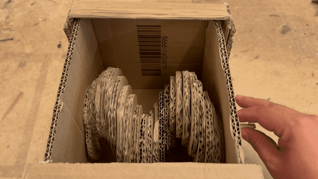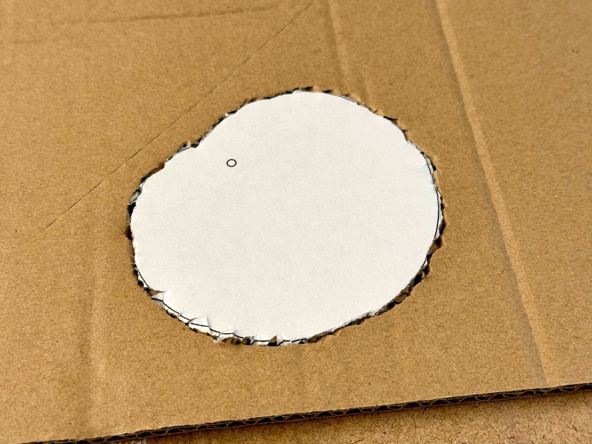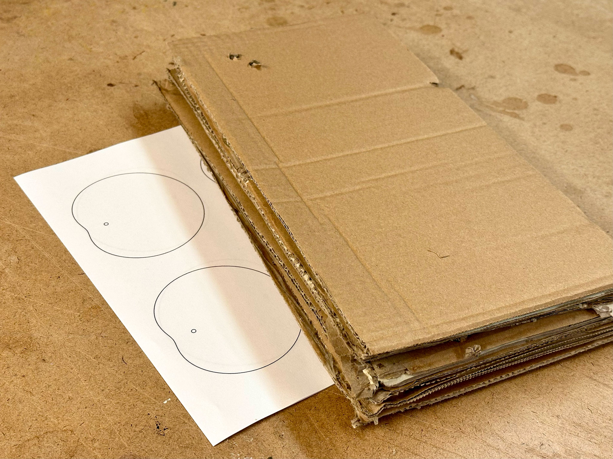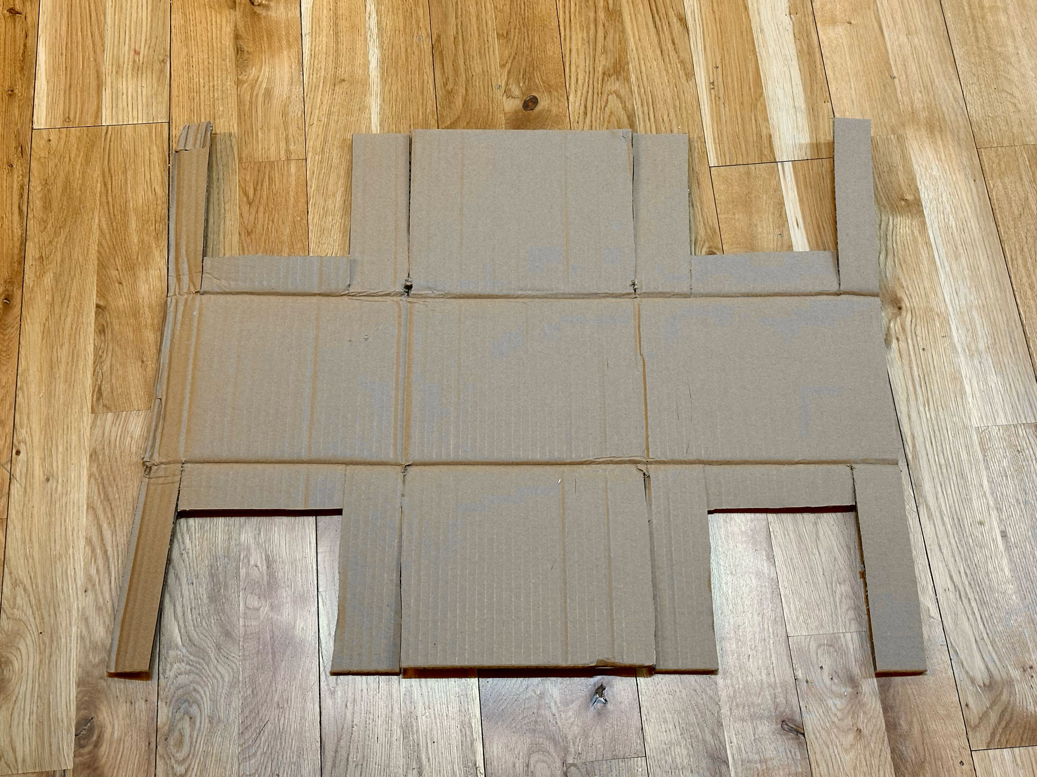 With the printed reference in hand, I started to work on a cardboard prototype. I found a large thick cardboard box, which ended up being my sole cardboard source.