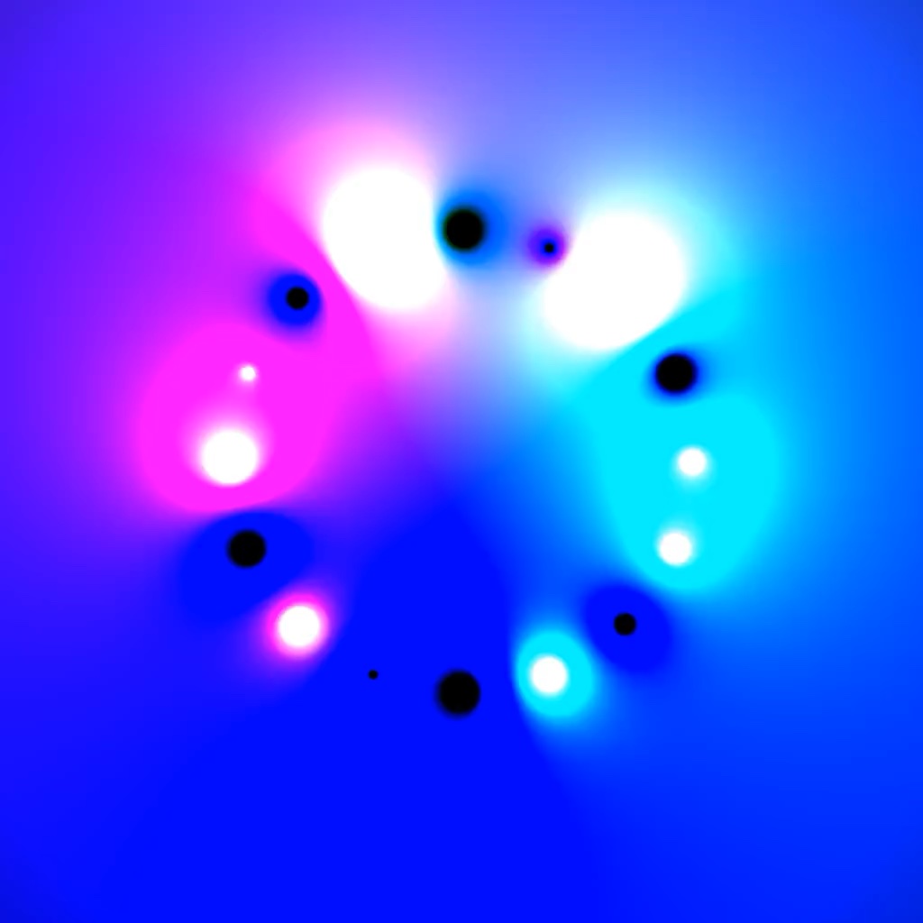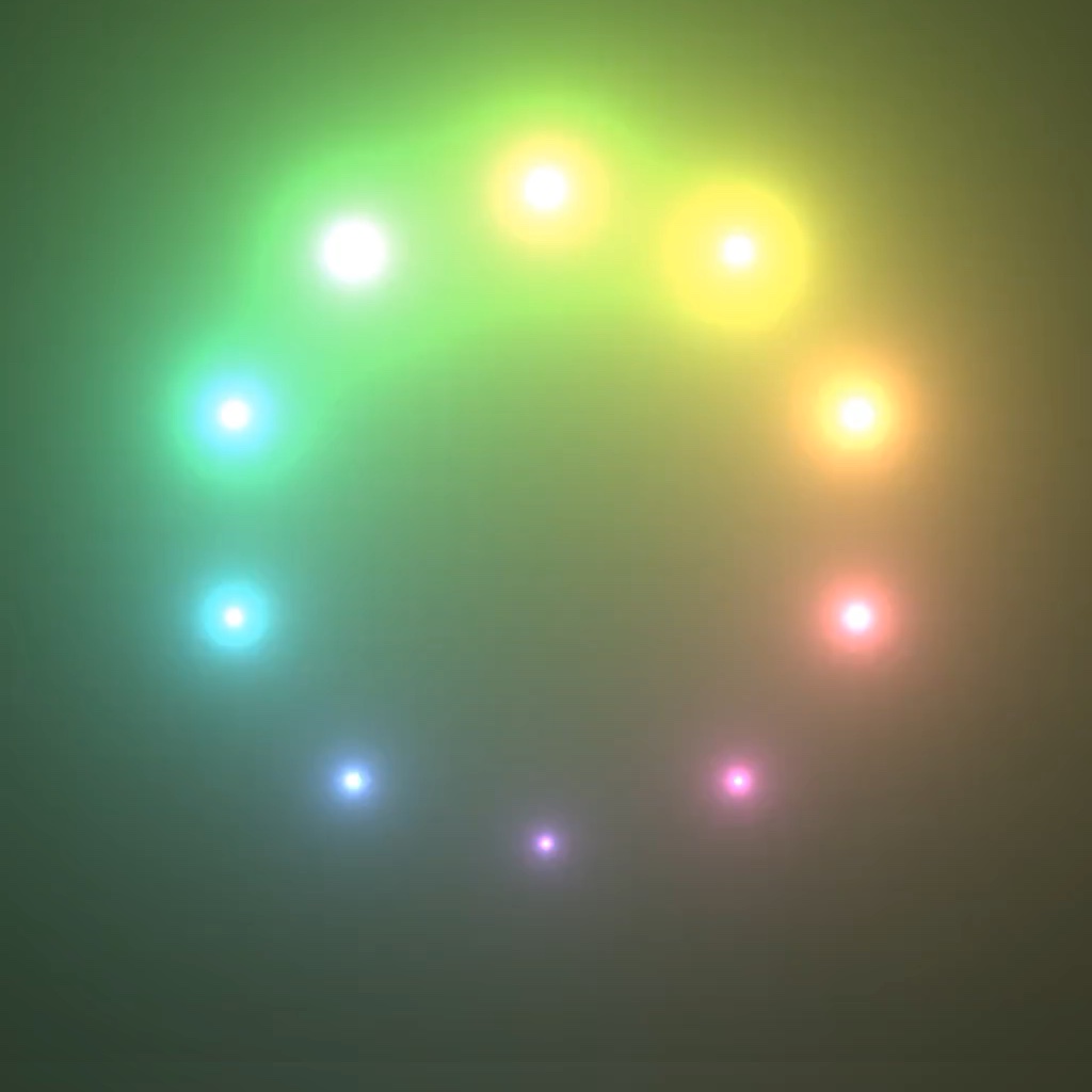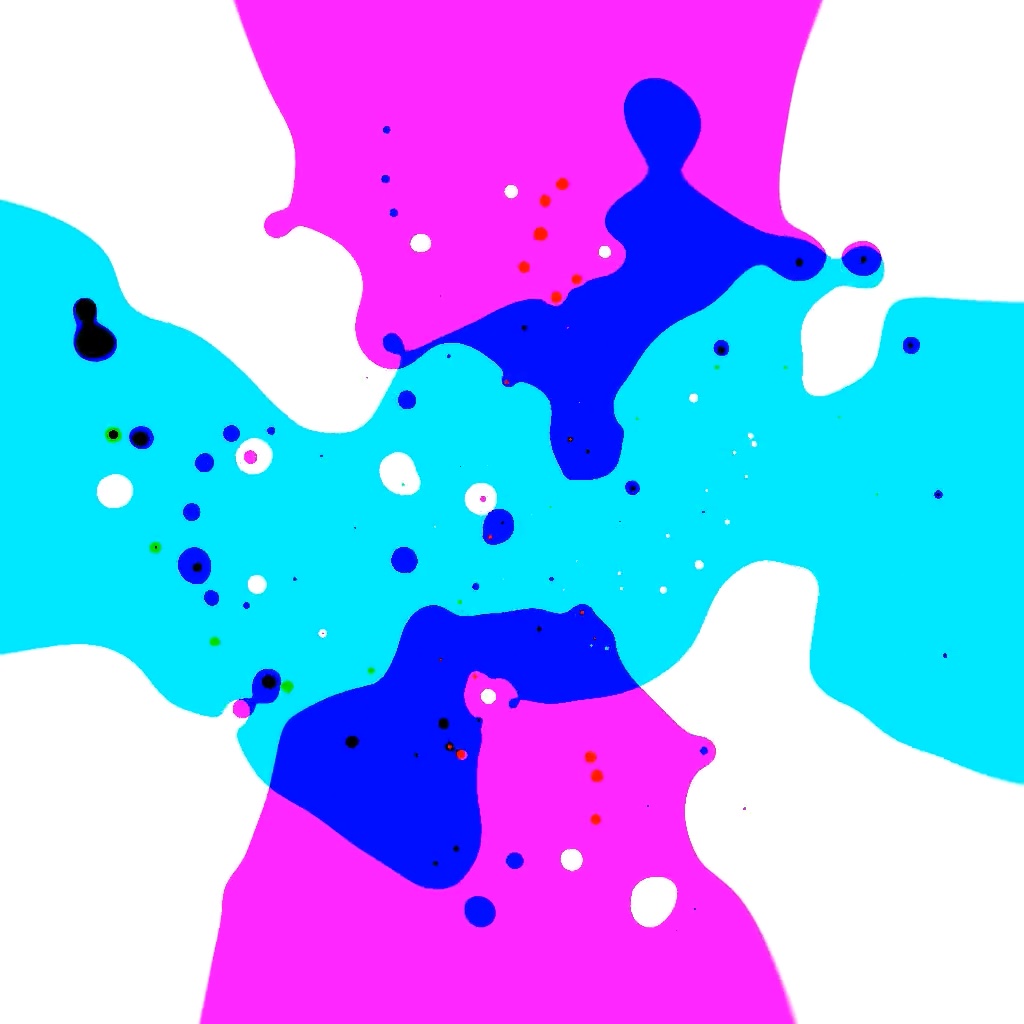 After I drastically increased changes in color, the glowing effect intensified and colors became very saturated, which resulted in an interesting transition between colors. Multiple dispersed glowing spots started to look like fluids.